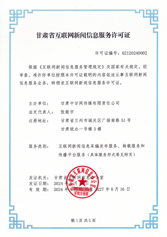 互聯(lián)網(wǎng)新聞信息服務(wù)許可62120210001號(hào)