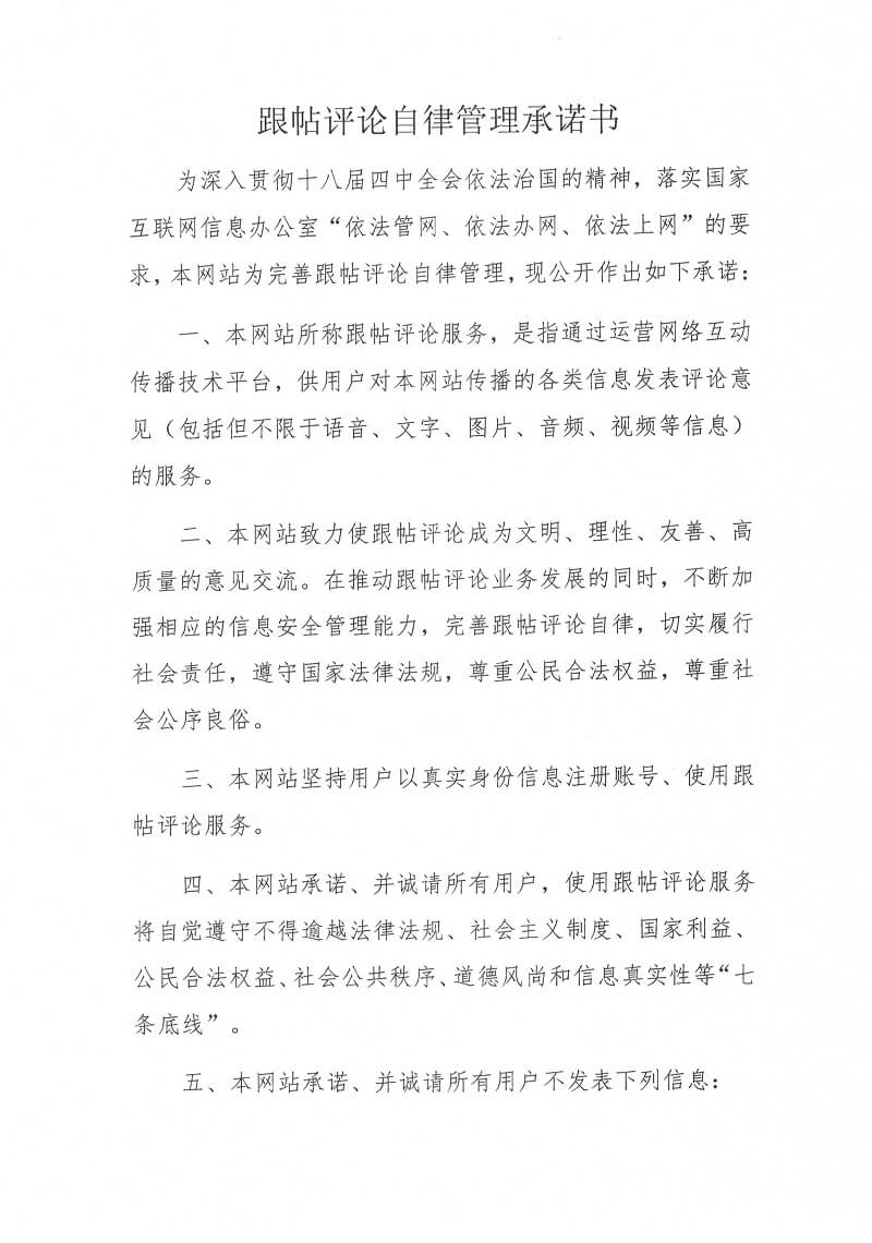 》 跟帖評(píng)論自律管理承諾書