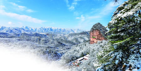 雪映麥積山