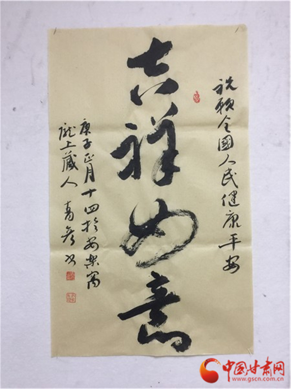 中國(guó)甘肅網(wǎng)2月12日訊(本網(wǎng)記者 張?zhí)m琴 張玉芳)2020年新春,面對(duì)突如其來(lái)的新冠肺炎疫情,全國(guó)人民正在以必勝的信心全力打贏這場(chǎng)沒(méi)有硝煙的戰(zhàn)爭(zhēng)。翰墨傳情,為抗疫助力。2月11日,由甘肅省文聯(lián)主辦,甘肅省文聯(lián)所屬文藝家協(xié)會(huì)、中國(guó)甘肅網(wǎng)承辦的甘肅文藝界戰(zhàn)“疫”主題作品展播活動(dòng)正式啟動(dòng)。我省12位書(shū)法大家揮毫潑墨,這些作品為所有奮戰(zhàn)在抗疫一線和防控疫情工作的平凡天使加油鼓勁,祈禱祝福,用文藝凝聚起抗擊疫情的強(qiáng)大精神力量,為我省防控疫情宣傳助力,受到了社會(huì)各界的贊譽(yù)。