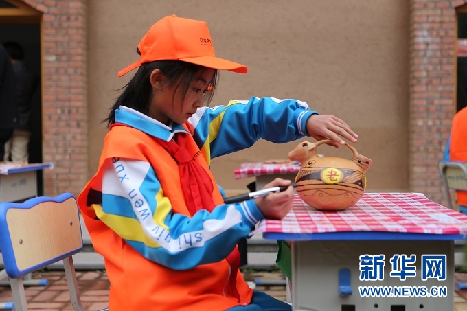 第四屆馬家窯文化節(jié)期間,學(xué)生參加臨洮縣中小學(xué)生陶藝大賽。新華社記者 耿馨寧 攝