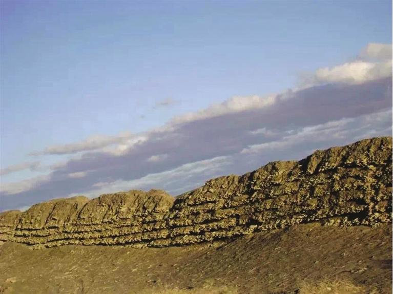 花海漢長城遺址位于玉門市花海鎮(zhèn)西泉村頭墩西側至二墩東側,西起三墩,東至花海頭墩,全長約3.5公里。長城基寬約2.4米,用沙石、紅柳分層夯筑,最高部分保存有紅柳7層,是河西走廊漢代長城遺址中保存較完好的地段之一。(蘭州日報社全媒體記者 王萬盈 高慧霞 文/圖)