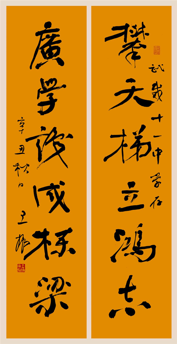 莫言擬聯(lián)、書法家王振撰寫作品:攀天梯立宏志,廣學(xué)識(shí)成棟梁