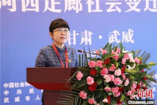 11日,“明清時(shí)期河西走廊社會(huì)變遷”學(xué)術(shù)研討會(huì)舉辦。圖為中國(guó)社科院古代史研究所黨委書記趙笑潔講話?!∥渫行侣剛髅郊瘓F(tuán)供圖