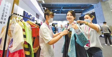韓國以第五屆絲綢之路(敦煌)國際文化博覽會主賓國的身份,在敦煌國際會展中心搭建了韓國館。館內(nèi)布展形式獨特,展品獨具韓國文化特色,美食、美景、美妝等溢滿韓國風(fēng)情,讓“各美其美、美人之美、美美與共、天下大同”的美學(xué)價值更加深入人心。