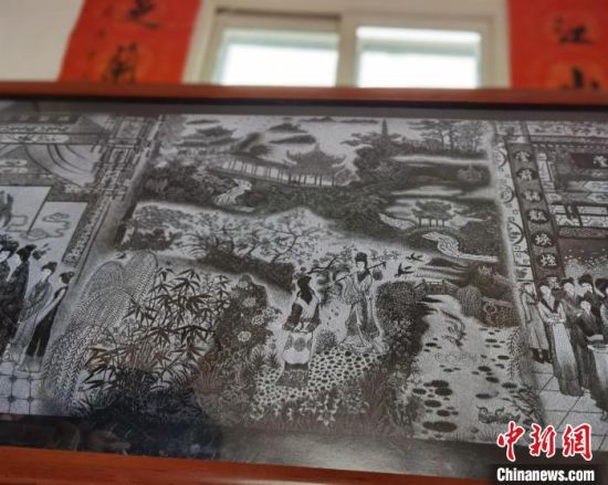 中新網(wǎng)蘭州11月17日電 (記者 楊娜 高瑩)“黛玉進(jìn)京”“寶黛初會(huì)”……耗時(shí)十余載,蘭州七旬藝人陶世清將《紅樓夢》中的三十余個(gè)經(jīng)典場景搬上大理石。在一塊長一米四,寬五十厘米的大理石上,人物的動(dòng)作、表情惟妙惟肖,桌椅帷幔、亭臺(tái)樓閣精致細(xì)膩。