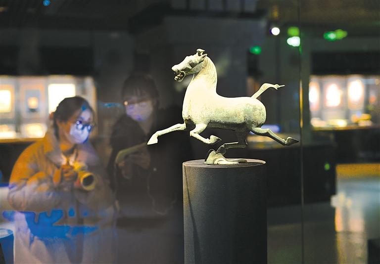 這是觀眾在甘肅省博物館銅奔馬等展區(qū)參觀。 奔流新聞·蘭州晨報記者 裴強(qiáng) 攝