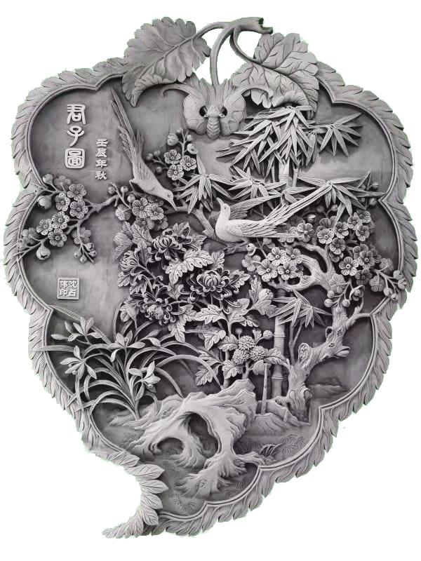 端詳沈占偉的作品,有栩栩如生的花鳥,大氣磅礴的山川,活靈活現(xiàn)的人物,能想到的體裁應(yīng)有盡有??梢哉f遠(yuǎn)看端莊大氣,近看細(xì)節(jié)精湛,尤其是對動植物的刻畫,仿佛通過他的刻刀賦予了生命,在原本冰冷的磚塊上呼之欲出,生機(jī)勃勃。難能可貴的是,他并不會限制自己的創(chuàng)作體裁,每一幅作品都是匠心之作,都傾盡了他的心血。