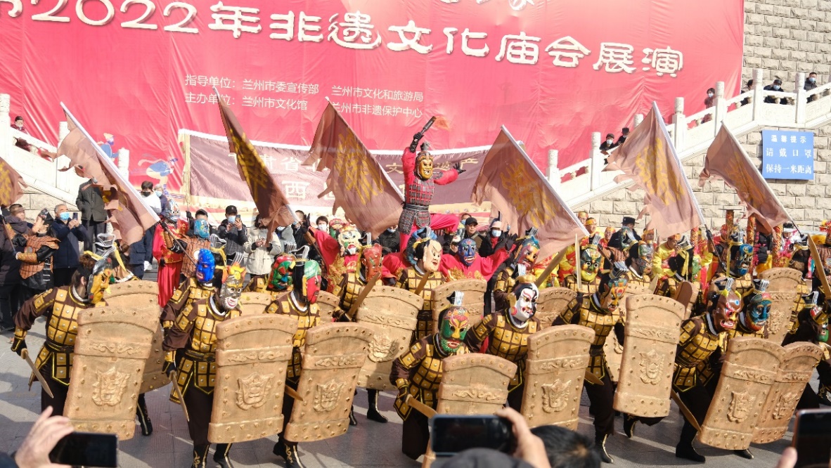 2月2日, 大年初二,“冬奧過大年·文化進萬家”蘭州市2022年非遺文化畝會展演活動在甘肅省蘭州市城關(guān)區(qū)金城關(guān)舉行。