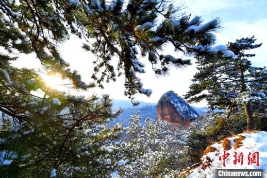 麥積山風(fēng)景區(qū)是中國(guó)南北方沉積地層在地表上層的分界線,又是黃河長(zhǎng)江兩大流域的分水嶺,雪后景色地貌獨(dú)特。周文濤 攝