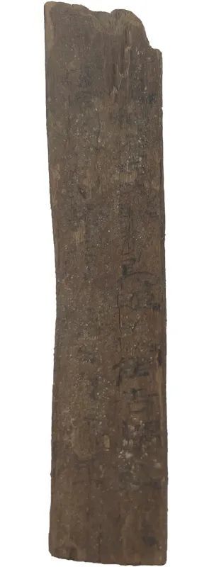 木簡1枚(出土編號:Ⅱ90DXT0213③:135),1990年出土于敦煌懸泉置遺址。長7.2、寬1.3、厚0.25厘米。木簡上殘,兩行書寫,字跡模糊,難以辨識。簡文作“二人。使都護西域騎都尉、安遠侯吉謂敦煌……駕,當舍傳舍,如律令。三月甲寅過,東。”。簡中“使都護西域騎都尉”是西域都護的正式官名,“騎都尉”當指以本官都護西域,是其本職,而“使”則突出了使職性質(zhì)。這是懸泉置記錄的一份傳文書,簡文不完整,大意是說某年三月甲寅日,西域都護鄭吉派遣的使者自西向東行,懸泉置依傳律規(guī)定,為停駐的兩名使者提供了飲食。該簡文對研究懸泉置的傳舍制度,以及西漢王朝對西域行使管轄提供了重要的原始資料?,F(xiàn)藏甘肅簡牘博物館。