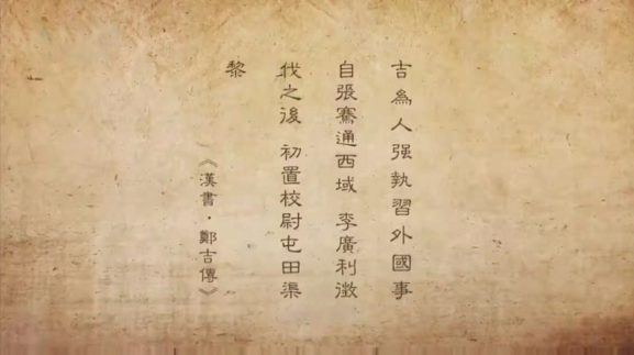 今天“甘肅簡牘之西域往事”的主人公鄭吉,《漢書》有其傳。為其作傳的班固在文中對鄭吉的評語中,有一句為我們耳熟能詳?shù)脑挘?/p>