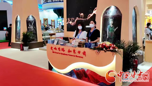 在云南昆明滇池國際會展中心7號館,甘肅省展館占地面積204平方米,共設(shè)有16個接待臺和4個非遺項目展示臺,展臺整體以“交響絲路·如意甘肅”為主題,以絲綢之路元素為亮點,以夏秋季旅游為宣傳重點,全面展示了甘肅省文化旅游新形象。