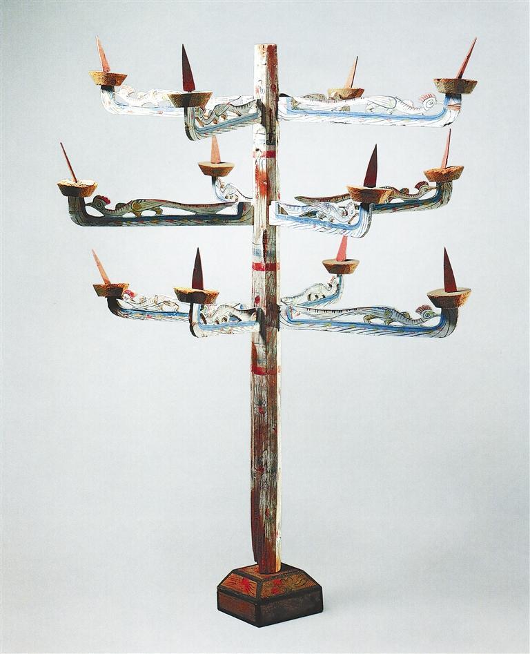 彩繪木連枝燈 魏晉