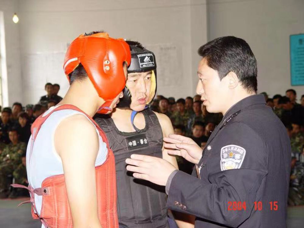 孔子曰:“用文事者、必有武備”。張飛虎從小就踐行了這樣的箴言。文事方面:1987年能考入西北師范大學(xué),可謂鳳毛麟角,在31年的執(zhí)教生涯中,他先后出版《中國警察擒敵制勝技術(shù)》《通備警用擒敵拳》《通備反暴恐制勝棍》《維穩(wěn)中國》等專著4部,主編了通備武學(xué)文集——《文心止戈集》和《高職體育與健康》、《警察體能訓(xùn)練教程》等教材10余部,發(fā)表論文60余篇。詩文無數(shù),且原創(chuàng)歌曲《通備萬古情》和《心中的胡楊》,尤其后者寫得蒼茫遒勁、寂寞堅強。今年4月,張飛虎將2021年新修訂的《公安機關(guān)人民警察內(nèi)務(wù)條令》17章232條創(chuàng)編成“《內(nèi)務(wù)條令》五字口訣”,以口訣的形式對條令內(nèi)容進(jìn)行了凝練和概括,方式新穎、內(nèi)容全面、朗朗上口,便于記憶,屬全國首創(chuàng)。這里只是列舉二三,便可見微知著。武備方面:1987 年,張飛虎在大學(xué)一年級就以劈掛拳、搜林棍的突出表現(xiàn)而躋身于西北師范大學(xué)武術(shù)隊并擔(dān)任隊長。1990 年大學(xué)四年級實習(xí)時,就在武威師范拉起 98 人的武術(shù)隊,心靈手巧的女弟子繡了一面刺有“飛虎隊”的大旗,從此,“飛虎隊”橫空出世。1991年,張飛虎到甘肅省人民警察學(xué)校任教后,組建警校武術(shù)隊——“飛虎隊”,成功地將通備等傳統(tǒng)武術(shù)傳到了警營,且代有人才。目前,甘肅警界飛虎隊員多為業(yè)務(wù)骨干、砥柱中流。1993年,參加河南陳家溝舉辦的全國“武術(shù)之鄉(xiāng)”武術(shù)散打比賽,位居第二,父兄皆有斬獲,其父被國家體育總局評為“中華武林百杰”。其后,與其兄張飛鵬聯(lián)袂在《甘肅公安》雜志上專辟《招招制敵》欄目,推介通備實用擒拿招法,每周一期,歷 8 載 168 期,有力地推廣了通備武學(xué)等傳統(tǒng)武術(shù)。他將技擊放在首位,“一招制敵”理念為公安民警提供了訓(xùn)練范本和擒敵指南。新世紀(jì)以來,張飛虎及父兄將傳統(tǒng)武術(shù)推出國門,走向世界。2009 年 5 月法國國防部致函邀請張飛虎赴法講學(xué),給法國特警(CS)著重傳授了為期一月的《警察干預(yù)技術(shù)》和通備實用招法,取得圓滿成功,同時他本人被法國理工大學(xué)聘請為客座教授。2012年被評為甘肅省第七屆高校教學(xué)名師;2015年被評為甘肅省警務(wù)實戰(zhàn)技能教學(xué)訓(xùn)練團隊帶頭人,2018年被推為“國際武道聯(lián)合會副主席”,2019年榮立甘肅省公安機關(guān)“人才警務(wù)工程”三等功,2021年被評為“全國公安優(yōu)秀教師”。