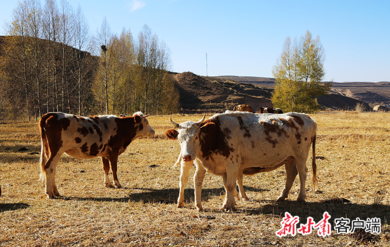 在秋日暖陽的照耀下,山谷中的楊樹林染上了一層絢麗色彩,干凈整潔的農(nóng)家院掩映其中。牛羊在草地上悠閑覓食,與汩汩流淌的溪水相映成趣。一派多姿多彩的美麗畫卷,令人心曠神怡、流連忘返。