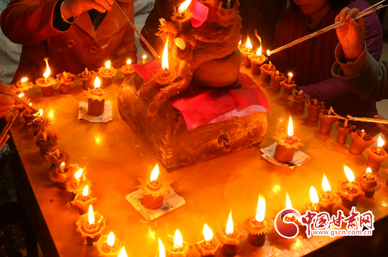 依照鄉(xiāng)俗,燈的數(shù)量一般為娘家最長(zhǎng)輩(爺爺、奶奶或父母)兩口子的年齡之和,以取健康長(zhǎng)壽之意。因?yàn)槊恳槐K小面燈里都插著棉花做的燈芯,注入適量清油,這樣在晚上就可以點(diǎn)燃。
