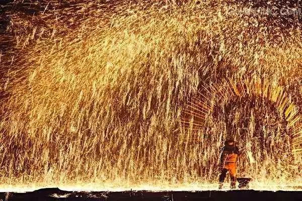 傳統(tǒng)“打鐵花”以老風匣、小融鐵爐、耐火罐、陶勺、耐火鍋、木板等為工具;以生鐵、焦炭、木屑為原料,利用木板擊打熾熱的鐵液和木屑混合物,打出一朵朵千姿百態(tài)、爭奇斗艷、精彩紛呈、絢麗奪目的“鐵花”,由于其顏色吉祥,寓意美好,因此,農(nóng)村都喜歡通過“打鐵花”來祈盼來年風調(diào)雨順,國泰民安。