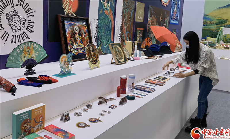 目前,甘肅省主題展館及分館已完成搭建和布展。讀者集團文旅公司運營經(jīng)理馬倩云介紹,甘肅省主題展館由形象綜合展區(qū)、文藝創(chuàng)作展演、數(shù)字敦煌展區(qū)、文化出版展區(qū)、非遺傳承展區(qū)、隴上好禮展區(qū)六大專題展區(qū)組成,突出敦煌文化、黃河文化、伏羲文化、長城文化、革命文化等甘肅特色文化元素,通過精選的具有標(biāo)志性的文創(chuàng)產(chǎn)品、圖書期刊、精美非遺等約600種4000件展品,全景式展現(xiàn)甘肅獨特豐富的文化資源、豐碩的文化改革發(fā)展成果和巨大的文化產(chǎn)業(yè)發(fā)展優(yōu)勢。