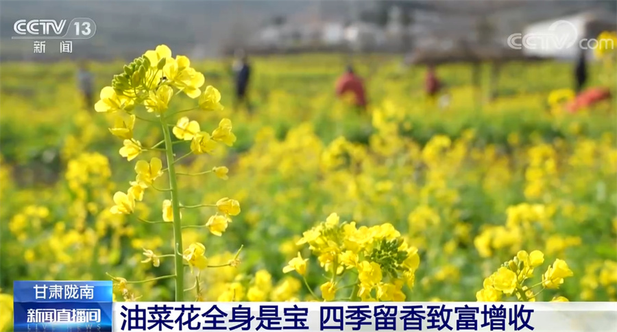 央視網(wǎng)消息:甘肅省地處西北腹地,但在其最南端的隴南市,山間的油菜花從臘月開(kāi)始就逐漸開(kāi)放,如今已經(jīng)進(jìn)入了盛花期,一派欣欣向榮的景象,給西北的初春增添了蓬勃生機(jī)。
