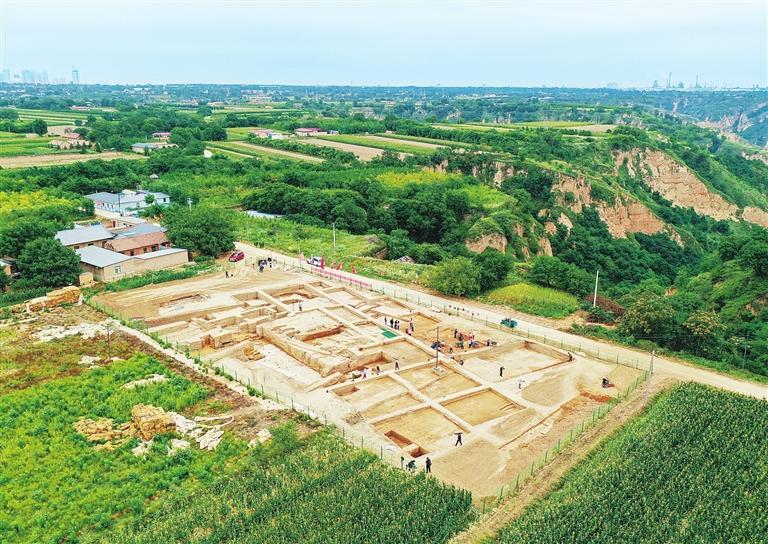 甘肅慶陽市南佐新石器時(shí)代遺址核心區(qū)大型宮殿建筑發(fā)掘現(xiàn)場(chǎng)(2022年8月23日攝)。