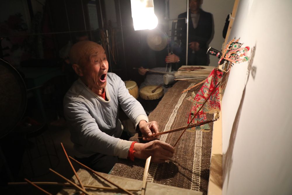 敬廷佑正在進(jìn)行道情皮影表演。新華社記者 張睿 攝