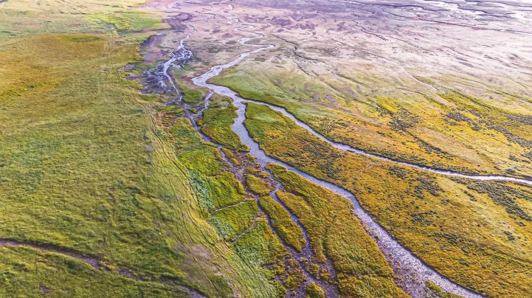 祁連山下的河流穿過山谷流向沙漠,在山前形成一個又一個壯觀的沖積扇,錯雜縱橫的支流默默滋養(yǎng)著土地,讓隴原萌生出更多的綠意。黃河流經(jīng)瑪曲,繞出180度的“九曲黃河第一彎”,海拔3400米的高原上,也有著奔騰壯闊的蜿蜒。