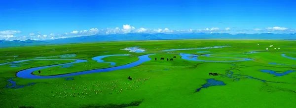 萬馬奔騰的山丹軍馬場、牛羊成群的??撇菰⑽惶幤钸B腹地的黑河濕地、定西水草豐茂的狼渡濕地草原……一片片綠洲或是溫婉或是粗獷,它們迎接遠行的禽鳥,等候加急的春風,它們將甘肅的另一種可能寫在潤澤的水土里,栽在豐茂的草場中。