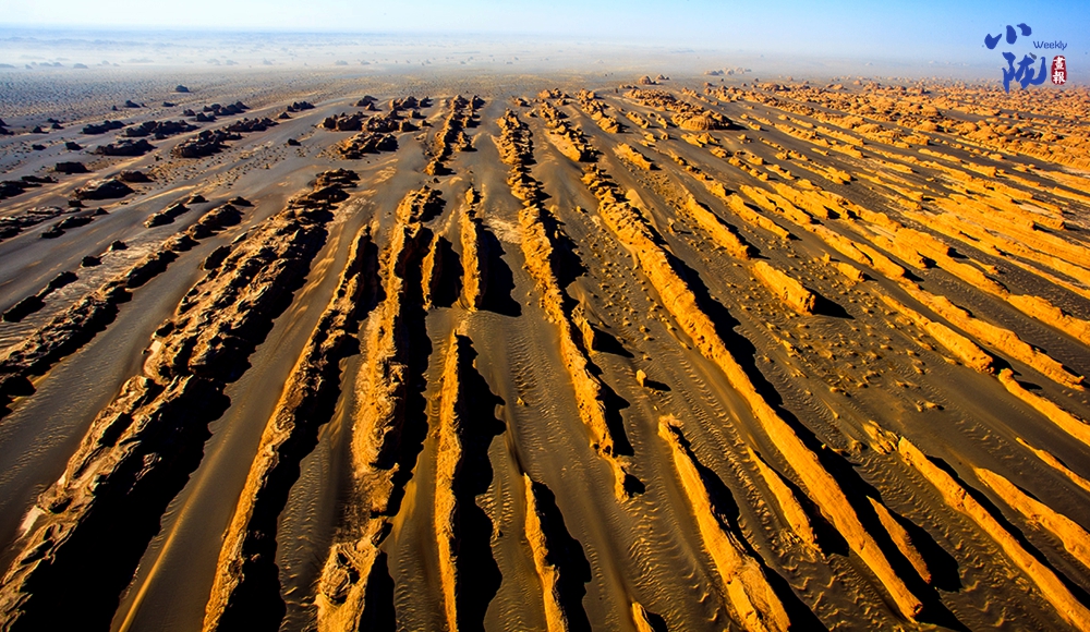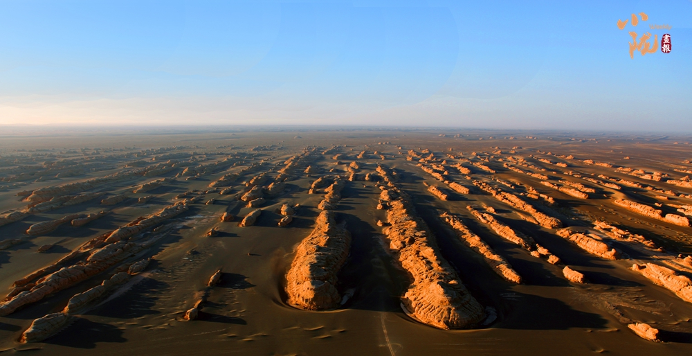 一隊(duì)隊(duì)整齊排列的雅丹像是整裝待發(fā)、氣勢(shì)磅礴的遠(yuǎn)航艦隊(duì),在浩瀚無(wú)垠的漠海上劈波斬浪,蔚為壯觀,實(shí)屬罕見(jiàn)。