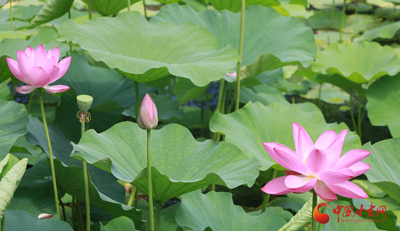 盛夏時(shí)節(jié),甘肅成縣裴公湖的荷花爭(zhēng)相盛開(kāi),吸引大批游客前來(lái)觀賞,拍照打卡。