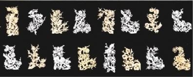 所剪的梅花枝干千姿百態(tài),變化多端,有粗有細、有長有短。梅花花朵有大有小,有的含苞未放,有的正在盛開。所剪的喜鵲也是形態(tài)多樣,有的在枝頭歡唱,有的在花間飛翔,有的竊竊私語,有的比翼雙棲,給人以喜氣又可愛的視覺效果。共分為8幀圖卷,分別為《寒梅吐艷》《喜梅報春》《一門喜事》《雙喜盈門》《喜事連連》《梅開五福》《登高望遠》《喜上眉梢》。