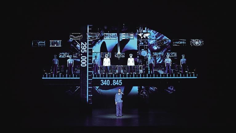 據(jù)了解,舞臺裝置上呈現(xiàn)出軍事工業(yè)的莊重感,如歌如畫般營造出了核潛艇極限下潛步步驚心的緊張氛圍,同時也讓觀眾近距離地走近了英模的成長歷程與內(nèi)心世界。