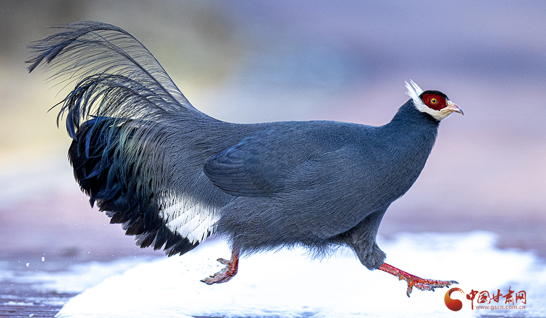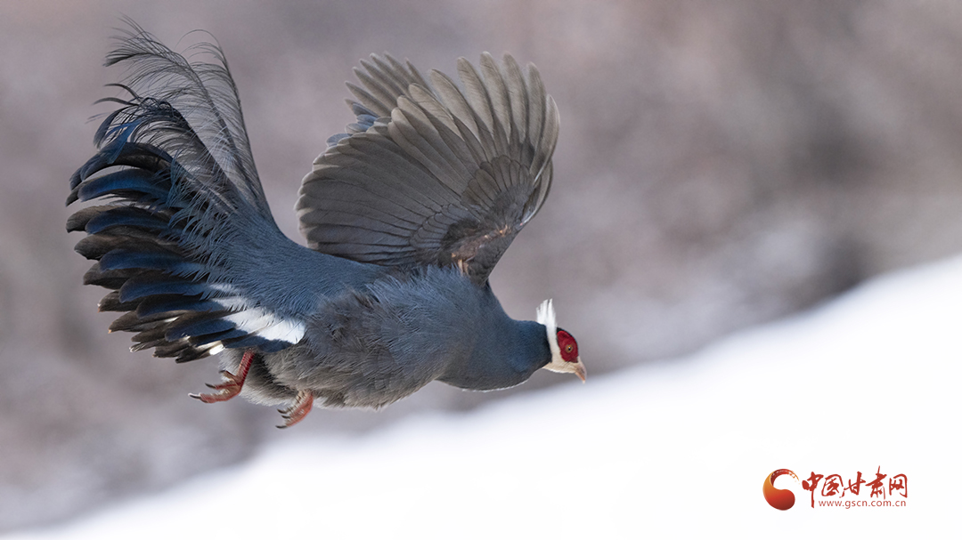 近日,祁連山國家公園甘肅省管理局張掖分局工作人員拍攝到國家二級保護野生動物藍馬雞覓食嬉戲場景。