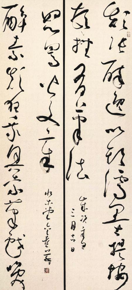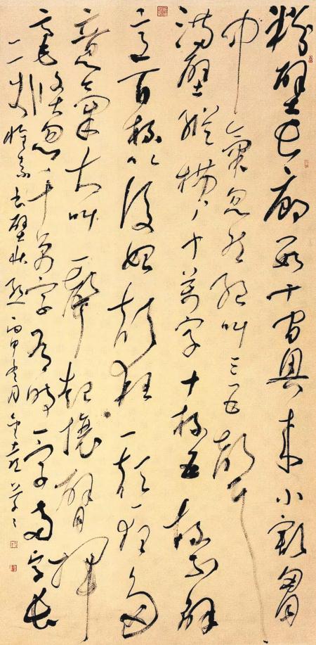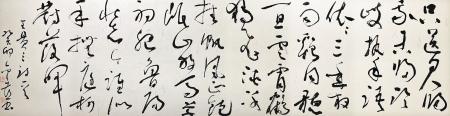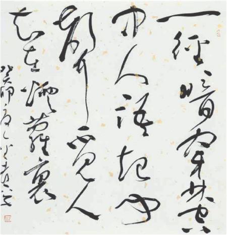 走出去,站在全國的高度,集中進行學習和交流,對一個立志進取的書法家,可以說是一個脫胎換骨的修煉,中國書法發(fā)展的當代狀態(tài),成為進取的最大參照,風格極力貼近時代風尚,在此基礎之上加入個人的鮮活語素,在作品中即表現(xiàn)出了時尚,又有自己的構想,才有自己的一席之地。侯金喜抓住時代脈搏,積極捕捉在展覽中尚處于不顯眼的元素,不斷加以顯化,使個人的作品在龐大的展出體系中獨具風采,難度可想而知,在高手如林的態(tài)勢下,侯金喜知難而上、刻苦磨煉,向經(jīng)典取法,向當代名家問路,雙向融合、求新求變,經(jīng)過了這樣一個長的時段的求索,他的草書在全國眾多的草書家中拔地而起,引發(fā)了廣泛的關注??此牟輹?,變化的度把握在了一個比較妥帖的度上,他不以奇異詭變?yōu)槌缟?,筆畫塑造大體以傳統(tǒng)語言為宗,使柔和與剛健統(tǒng)馭在一起,這種立意基本圍繞中國書法流變的中軸線,可以受到時間的考驗,在一些筆畫中注入的時代信息,經(jīng)過個人的藝術提煉,具有了新的生氣。在結構選擇上,他同樣進行了深思熟慮,反復篩汰了過度追求時髦的招數(shù),一直強調深層次的內涵,把一個結體放在歷史的縱向上反復琢磨,他自己認為,形象造型只有沿著時序的推進,才能有機地融入歷史,成為藝術的終極選擇,所以侯金喜的探索是審慎的,邁進是疊復的,我們欣賞他的作品,可以看出他思考的勤謹,每一個階段都有不同的表達,欣賞者隨著他的筆觸的流瀉,可以領略到豐富的視覺享受。