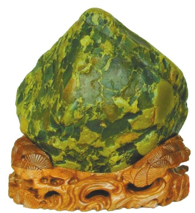 龐公石屬火山巖,質(zhì)地堅(jiān)硬,細(xì)膩濕潤(rùn),色彩豐富,深綠致密,翠碧如玉,石身間有紅、黃、白、黑等絢麗的紋理,構(gòu)成諸如古今人物、珍禽異獸、花草樹(shù)木、行云飛瀑、江河山澤等奇特紋理圖案,尤其是玉化多彩的“翠”,著實(shí)讓人心生憐愛(ài)……