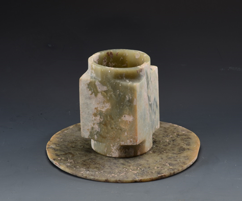 全世界可能只有中國先民具體提出“天圓地方”的宇宙觀。或至少可說:全世界只有距今四、五千年前,中國黃土高原上的先民,具體地用美石或美玉磨制帶中孔的圓形器、方形器,也就是:圓璧與方琮,來祭祀天神、地祇。先民甚至將圓璧、方琮上下垂直疊壓,將圓璧中孔套在方琮的短射口外,以增加疊壓的穩(wěn)定性。