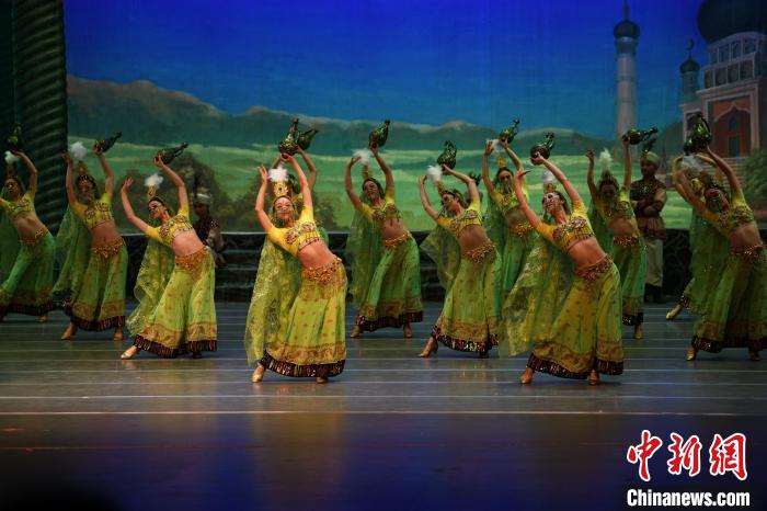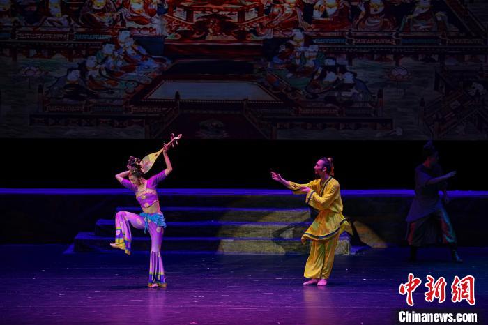 2023年4月17日晚,中國經(jīng)典舞劇《絲路花雨》在澳門百老匯劇場(chǎng)演出。(資料圖)甘肅演藝集團(tuán)供圖