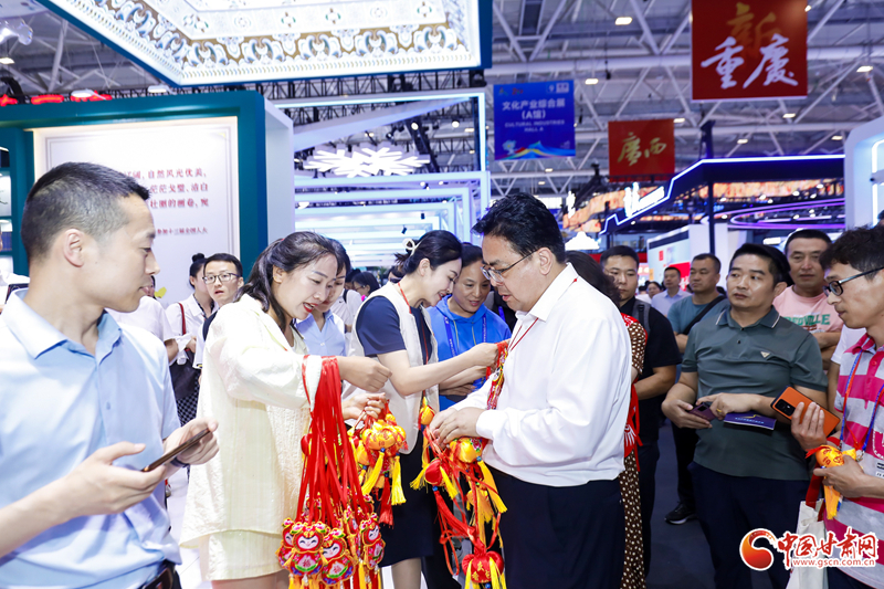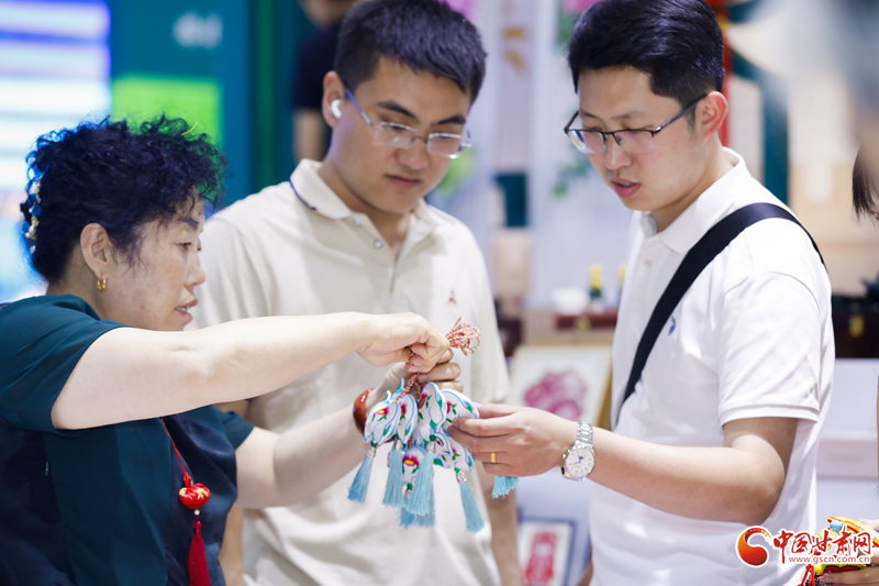 在展館內(nèi),慶陽(yáng)香包、剪紙等民俗產(chǎn)品同步進(jìn)行展示展銷(xiāo),深受現(xiàn)場(chǎng)觀眾歡迎,大家紛紛爭(zhēng)相購(gòu)買(mǎi)。