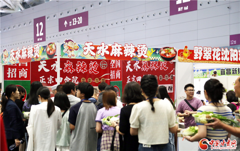 記者在現(xiàn)場看到,前往蘭州牛肉面、天水麻辣燙兩個展區(qū)品嘗美食的游客絡繹不絕。特別是在天水麻辣燙展區(qū),端著裝有各類蔬菜菜盆的食客排起了長隊,紛紛翹首以盼,期待蔬菜下鍋,一嘗“麻”“辣”美味。