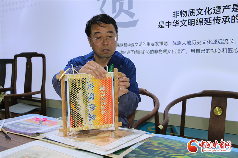 在第三十屆蘭洽會(huì)平?jīng)鲳^內(nèi),非遺傳承人魏巍正坐在桌前制作著泥金紙織畫(huà)。巧手之下,金色的“緯線(xiàn)”交織于“經(jīng)線(xiàn)”之間,經(jīng)緯交錯(cuò),乾坤自成。