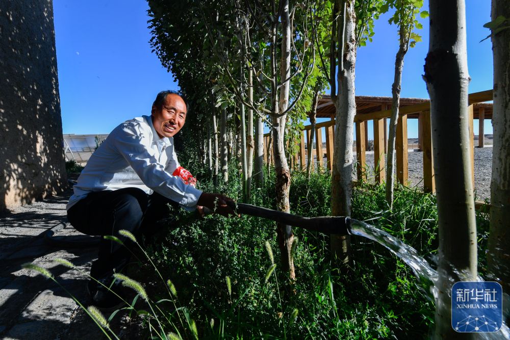 后來,得益于敦煌加強(qiáng)文保力量,他的妻子聞春瑜也成為一名文保員。從此,他們夫妻二人便扎根大漠,像古代戍邊戰(zhàn)士一樣守護(hù)長(zhǎng)城。他們?cè)诜壳拔莺蠓N下白楊樹,澆灌出一片菜園,為生活增添點(diǎn)點(diǎn)綠意與希望。
