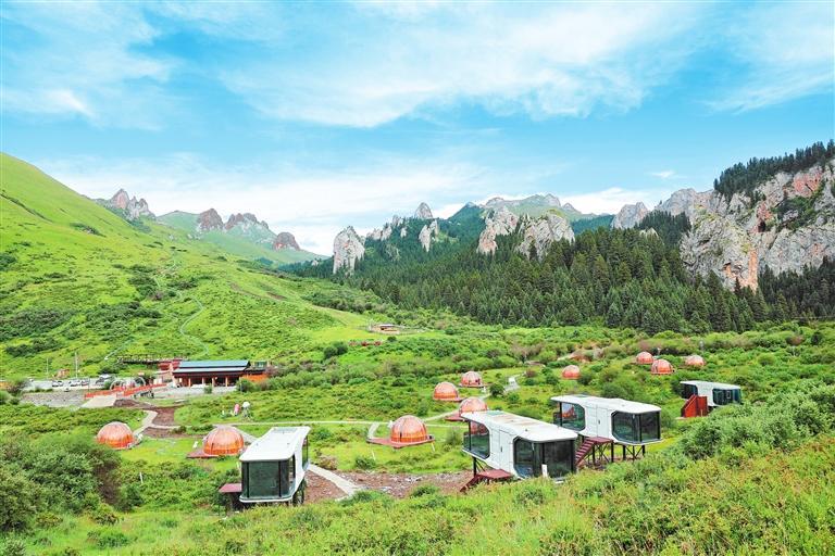 夏河縣的??撇菰?,游人在山間草場(chǎng)、樹(shù)林河邊支起一頂頂帳篷,白天品著飄香的奶茶,晚上躺在草地上仰望星空,很是愜意。