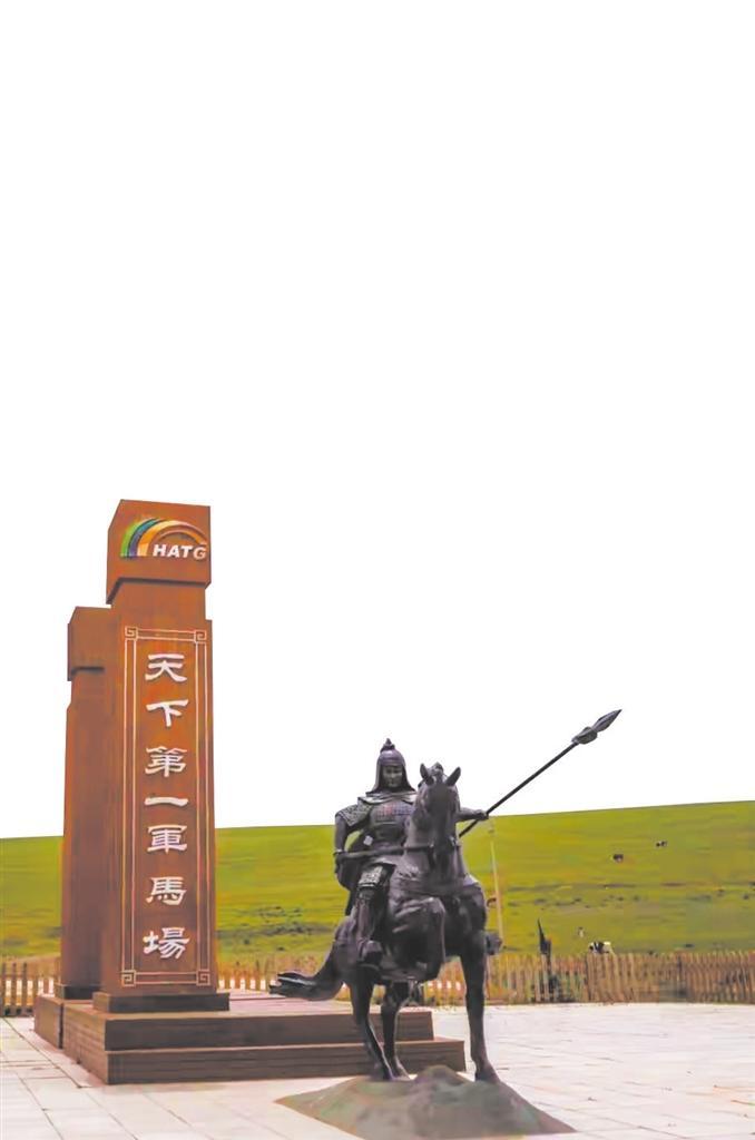 在碧草連天的谷地,當(dāng)?shù)芈糜尾块T擺放了一組白馬的大型雕塑,栩栩如生,它們要么仰天長(zhǎng)嘶,要么低首撫弄地上的青草,還有的彼此耳鬢廝磨,像是親密的戀人。