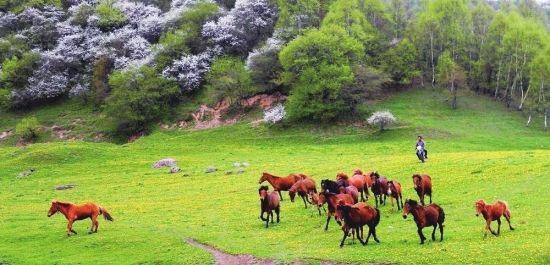 關(guān)山在很長(zhǎng)一段時(shí)間一直是中國(guó)重要的牧馬之地。據(jù)史書記載,大將衛(wèi)青、霍去病北征匈奴,曾從關(guān)山征集戰(zhàn)馬14萬(wàn)匹,足見(jiàn)當(dāng)時(shí)這里牧馬業(yè)的繁盛。然而現(xiàn)在,馬的蹤跡只是景區(qū)的點(diǎn)綴,要想看到萬(wàn)馬奔騰的場(chǎng)面,要去河西走廊的山丹軍馬場(chǎng)。
