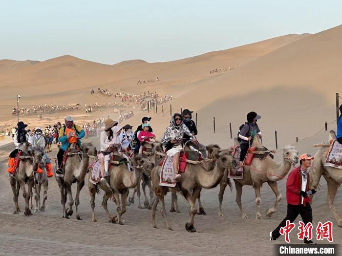 圖為游客在鳴沙山·月牙泉景區(qū)游玩?!〈魑牟?nbsp;攝