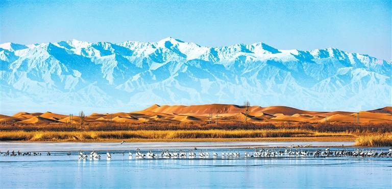 流經(jīng)敦煌、酒泉的疏勒河,是河西走廊第二大內(nèi)陸河,是中國(guó)大江大河當(dāng)中自西往東流淌的代表,源頭也在崗格爾肖合力雪山。是由祁連山系的走廊南山、托來南山、疏勒南山和大雪山的冰川融水匯流而成。經(jīng)過了100多公里匯集,在抵達(dá)甘肅酒泉的昌馬峽谷的時(shí)候,已經(jīng)成為一條從群山之中奔涌而出的大河。