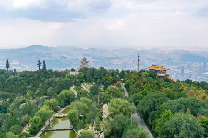 蘭州市城關(guān)區(qū)皋蘭山三臺閣景象。新華社記者 郎兵兵 攝