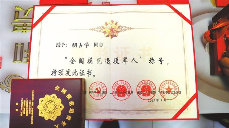 今年8月,胡占學(xué)被人力資源和社會(huì)保障部、中共中央組織部、退役軍人事務(wù)部、中央軍委政治工作部等軍地相關(guān)部門(mén)聯(lián)合授予“全國(guó)模范退役軍人”榮譽(yù)稱號(hào),這是對(duì)退役軍人的最高榮譽(yù)和最大褒獎(jiǎng)。