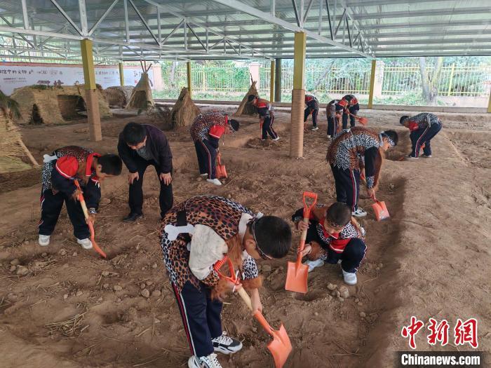 10月16日,大地灣博物館開展“史前工坊”特色主題社教活動(dòng),吸引大批孩子參與體驗(yàn)?!?秦安縣委宣傳部供圖)