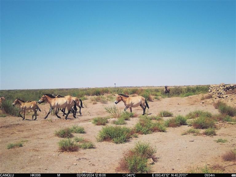 近日,甘肅敦煌西湖國家級自然保護區(qū)工作人員在保護區(qū)監(jiān)測數(shù)據(jù)中發(fā)現(xiàn)了令人驚嘆的一幕:普氏野馬與野駱駝同框。